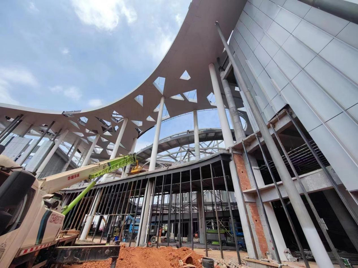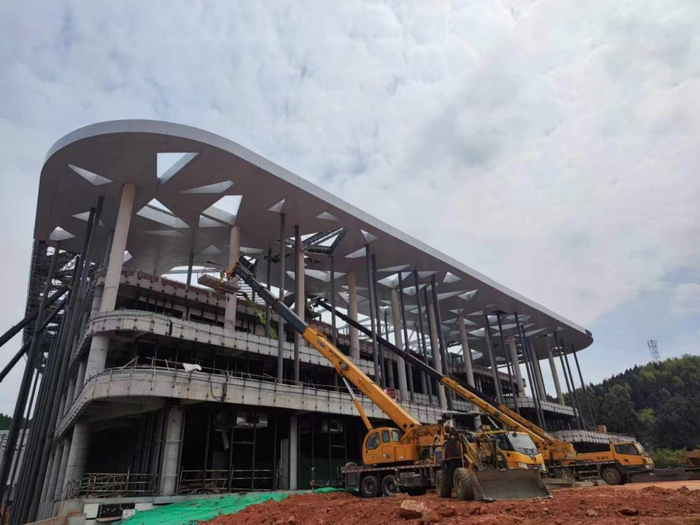 项目在时间紧、任务重的条件下快速推进。2020年11月8日,“大德如阳•巴蜀风华”四川德阳城市推介暨华谊兄弟星剧场美好生活综合体落户德阳启动仪式在北京拉开了项目的大幕,项目正式进入实施阶段。项目于2022年1月17日正式动工。各参建单位挂图作战,克服了极端高温天气、疫情防控等重重困难,历时179天完成混凝土主体结构施工,于2022年10月顺利完成项目封顶,内容构建、演艺制作、场景重构、商业运营等目前各项工作也正如火如荼高速推进,项目有望2023年6月全部完工并投入使用。