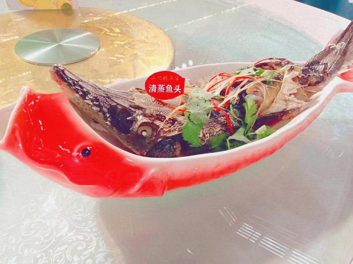 2023年,张帆女士在房山区大石窝镇专职妇联副主席王海燕的指导和带动下,带着新研发的鲟鱼系列宴席再出发。碧绿爽口鱼丝、解暑鱼冻、铁锅炖鲟鱼、椒盐香脆鱼皮、糖醋鱼骨、扇贝鱼丁、清蒸龙头龙尾、鱼腩炖豆腐、口蘑鱼子酱蒸鱼泥等一道道精品菜在大厨吴建国的掌勺下,常洪春、魏艳梅的配合下,做出了家乡的味道。