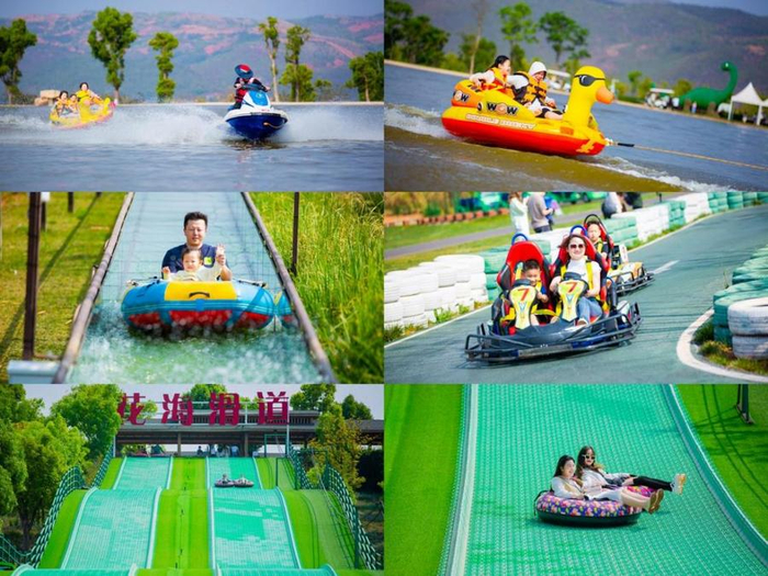 全地形越野、玻璃漂流、花海滑道、水上快艇小黄鸭、卡丁车等您来挑战
