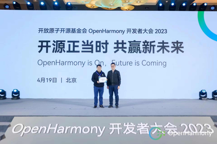 4月19日,以“开源正当时,共赢新未来”为主题的开放原子开源基金会OpenHarmony开发者大会2023(以下简称“大会”)在北京举行。本次大会由OpenAtom OpenHarmony(以下简称“OpenHarmony”)项目群工作委员会主办,华为、开鸿智谷、万里红、深开鸿、诚迈科技、九联科技、润开鸿、鸿湖万联、优博终端、奥思维等单位共同合作支持。