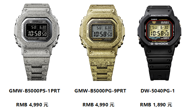 本次,40周年系列共带来三款腕间新作!其中,银色的GMW-B5000PS-1PRT与金色的GMW-B5000PG-9PRT基于金属GMW-B5000D,高度复刻了初代表款DW-5000C的标志性外形。但不同的是,这两款腕表采用了不锈钢深层硬化工艺,不同于涂层硬化,该工艺是通过将气体注入钢表面,从而创建硬层使材料硬化,硬度约为普通不锈钢的三倍。以此造就的强韧型格,在诠释经典的同时,亦再铸坚韧进化!(每一款腕表呈现其独特压花纹理,具体以实物为准)