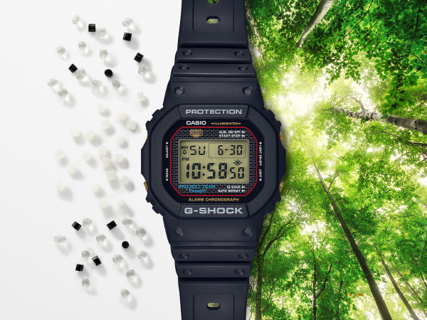 以先进环保的材质重现经典复古颜值,DW-5040PG-1特别采用生物质材料打造腕表表圈及表带。该材质以蓖麻籽或玉米等可再生有机资源衍生物质为原料,并通过先进的化学或生物合成得到高分子材料,不仅能够胜任户外严苛的环境,而且还可以降低碳排放,减轻自然环境的负担。