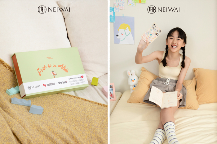 2023年4月20日,中国,上海 —— 专注于内衣、家居服、便服等贴身衣物的生活方式品牌NEIWAI内外于近日升级推出专为发育期女孩设计的少女发育内衣,并系统性完善了女孩发育三阶段所需的内衣产品系列,旨在为处于发育期的女孩们带来科学的、全周期的舒适贴心选择。同时,NEIWAI内外携手腾讯公益与「豆苞女孩」公益项目开启公益捐赠计划,为步入青春期的困境女孩提供必要的物质支持与心灵引导,用舒适与爱,陪伴更多女孩同频成长。