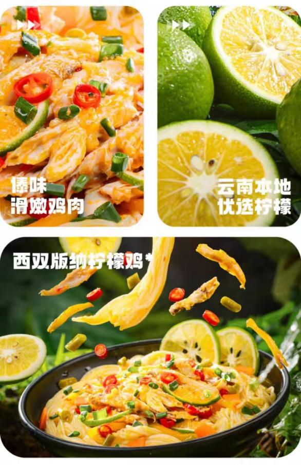 “西双版纳柠檬鸡味”、“沾益辣子鸡味”、“丽江香浓麻酱味”、“石屏臭豆腐螺蛳味”四种口味。每一种口味的研发灵感都来自于本土,依托云南高原饮食特色,应用本土食材及烹饪方式,将地域口味与大众喜好相结合,让云南米线的类型得以不断延伸,满足不同消费的喜好,呈现纯真鲜香的彩云滇味。