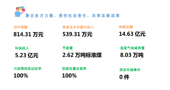 坚持高质量发展和效益优先相结合的发展思路,2022年环保投入5.23亿元,按期完成中央生态环境保护督察反馈问题整改销项,年度整改率100%;系统实施废气无组织排放、工业固体废物合规管控等8个专项排查整治;积极推进生态修复,工业废水近“零”排放,危险废物合规处置率100%。公司全年节能量2.62万吨标准煤,温室气体减排量8.03万吨。
