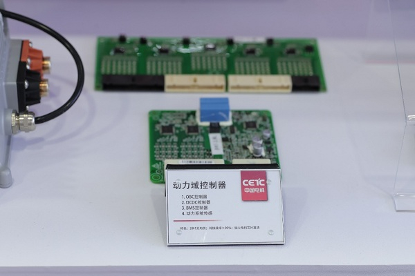 动力系统方面,展示三合一控制器、电池管理系统、动力系统传感等产品,具备智能化动力集成管理,智能诊断电气故障、智能节电等功能。