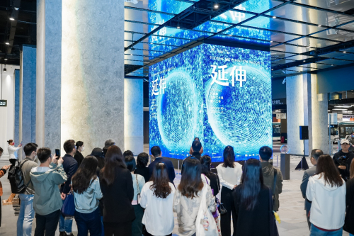 活动中,几位嘉宾共同启动装置,光束如同精神力量般注入TODTIME时间廊公共艺术空间内的标志性大屏幕,象征着近年来闵行公共文化新阵地TODTIME时间廊正式重启,视觉艺术和新兴技术将在这里继续融合并绽放,大众在等车或行走间隙,能够再次欣赏到来自世界各地的优秀新媒体艺术作品。