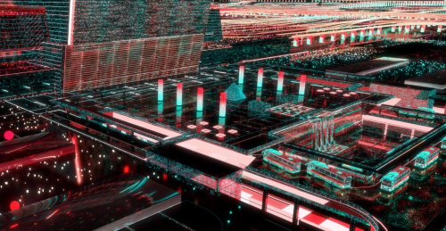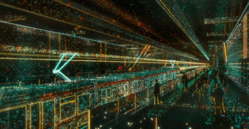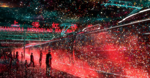 艺术家通过矢量线条和粒子交织,勾绘了一场时代旅程,以观众熟悉的具象场景,从地铁一号线莘庄站出发,延展出闵行、上海乃至长三角地区的经济文化发展盛况。随着旅途和视野的不断延伸,虚拟的粒子画面将真实地唤起观众对于城市的记忆、自豪之情,以及对美好未来的无限憧憬。