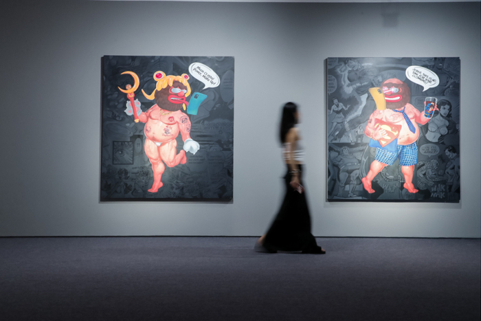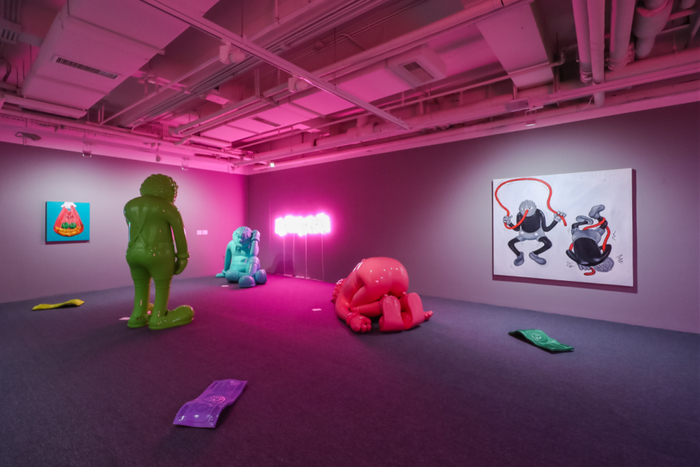 4月21日,昊美术馆的展览“都市野人”便呈现了徐沫关于“野人tiaotiao”的创作。展览现展出了约24幅画作,两组非正常动作的雕塑系列作品,三件霓虹灯作品,还有手办即将在5月7号展出。伴随着不同板块的多样性视觉勾勒,一幅关于神秘生物“现代新野人”的图景被带到了观众眼前。