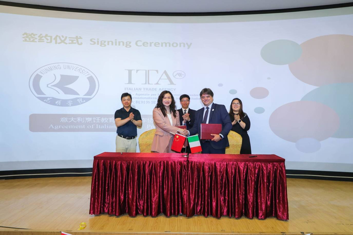 随后,意大利对外贸易委员会北京代表处携手昆明学院进行了别开生面的剪彩仪式和签约仪式。