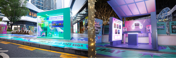 榜单发布之时,QQ音乐联合卓越商业共同打造【乐在其中】潮流音乐街区,结合巅峰榜各个榜单设计对应主题的音乐盒子,邀请乐迷前来打卡巅峰时刻,一起乐在其中。