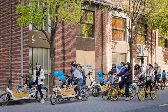 在5公里探索骑行之旅中,小蓬友们在毛怪的引领下,穿梭于现代多元街区与静谧的传统弄堂之间,完成了一系列可持续体验:探访裁缝修补店、可持续玩具空间以及Brook&Breeze充满环保元素的自行车工作室,并找到了四处城市中微小的可持续角落与物品——一个绿色的阳台、一片竹林、一个循环再造的物品以及一个弄堂里的回收机器。小蓬友们在这一场充满探索的自由骑行中,通过不断解锁的可持续微场景,逐渐发现低碳背后的奥秘就在于身边一个个微小的环保行为,每个人都是城市可持续生态中的重要成员。