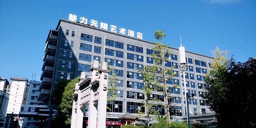 恩施基地,设在魅力无限艺术酒店,周边环境清新雅静。相邻是硒都茶城,茶城里房屋错落有致,绿树婆娑,溪水环绕。