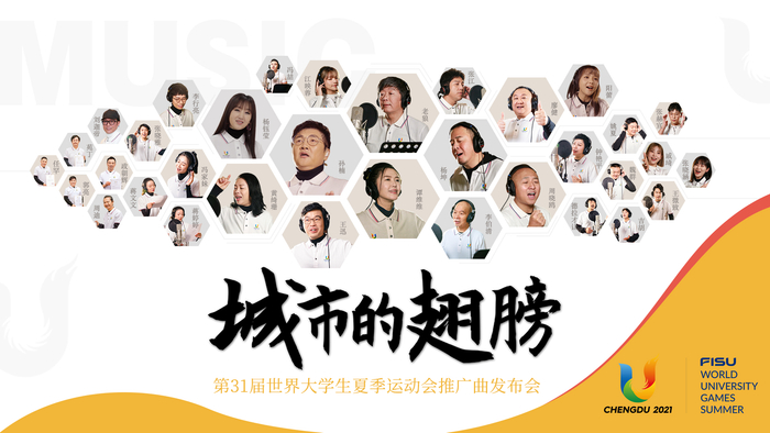 “欢迎来成都,成就你梦想,信仰需要拼搏才怒放……”作为继2008年北京奥运会主题曲《北京欢迎你》之后,又一以世界赛事为契机打造的重量级城市宣传歌曲,《城市的翅膀》由国内著名音乐制作人、指南针乐队主创郭亮制作,集结了孙楠、谭维维、杨坤、黄绮珊、周晓鸥、张江、李伯清等超30位重量级明星倾情演绎,以音乐为窗口向世界传递成都之声。歌曲MV以“来”为核心,展现“来成都”、“来感受”、“来玩耍”、“来潇洒”等一系列迎大运背景下的城市生活画面,用音乐描绘成都海纳百川的城市风貌,让体育精神和青春力量一起昂扬。