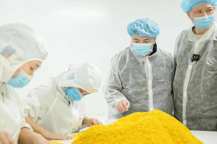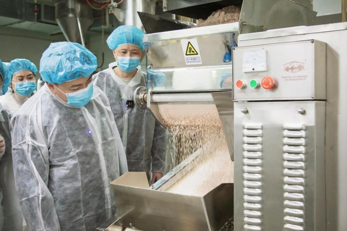 中国农科院加工所食物营养团队还到藕粉生产车间对各个生产环节进行考察交流。参观后佟立涛博士对产品生产线的流程规范表示肯定,并对相关藕粉生产流程和加工工艺提出了优化建议。