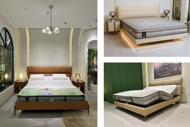 以极简、现代、亲和为核心的美学风格,首创行业开放式互动体验空间,打破传统封闭式店面,完美融入周边卖场环境。双入口设计,半开放吧台,让人与人、人与环境进行更多交流、更多自主探索。空间呈现充满故事性、情感性与包容友好,营造更健康、更舒适的睡眠环境,让人、自然、 生活、睡眠融为一体,是一场情感共鸣的沉浸式精神体验。
