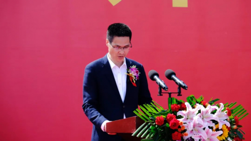 施工单位铭睿建设公司董事长发言致辞,表达了承建方对项目质量严格把关的决心,铭睿建设将有序、快速、优质、高效地完成工程建设任务。
