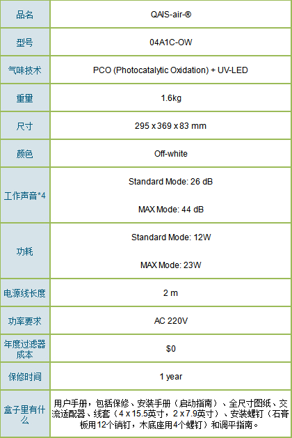 •静音,宠物安全,QAIS-air- 04 (快适空间 04)全天候运行,不含化学物质