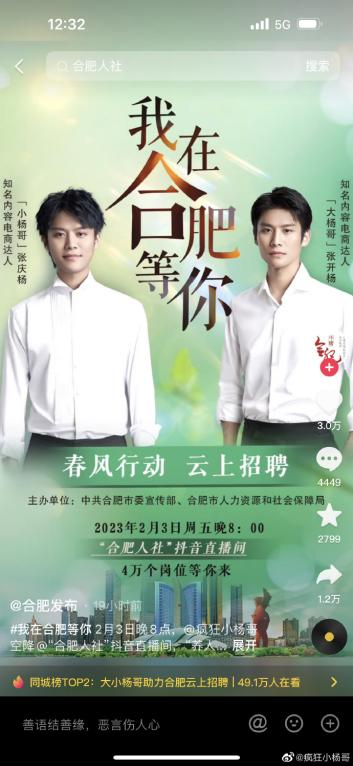 而“疯狂小杨哥”作为合肥目前唯一的头部“流量”,一方面能很好契合合肥作为“科技之都”所独具的科技化、年轻化和包容度;另一方面,以“疯狂小杨哥”为首的互联网资源常驻合肥,也有利于优质资源的引进和整合。若“疯狂小杨哥”能带领三只羊网络打造出一整套完备的产业链,那合肥的电商事业也能连带着大步向前迈进。