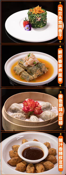茴香苗葱油拌蚕豆、嫩芽碧绿脆马蹄、