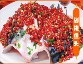 顶部铺着红彤彤剁椒的剁椒鱼头