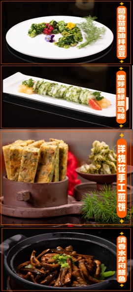 洋槐花手工煎饼、清香水芹闷鳝鱼,