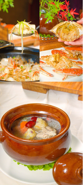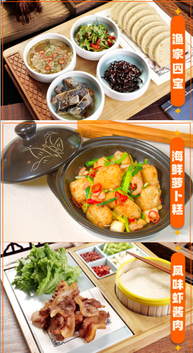 馍片宣软、肉菜鲜美的渔家四宝鲜美清甜、香糯软绵的海鲜萝卜糕皮薄肉脆的风味虾酱肉