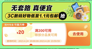 为了给消费者带来更加优质的购物体验,更轻松地入手各式出游装备,此次京东3C数码出游季重磅上线十万件数码出游装备至高9.9、低至1.1元包邮等福利,即日起至4月28日期间入手部分产品还有满200立减20元的惊喜优惠券,让你换新无忧,轻松购好物。