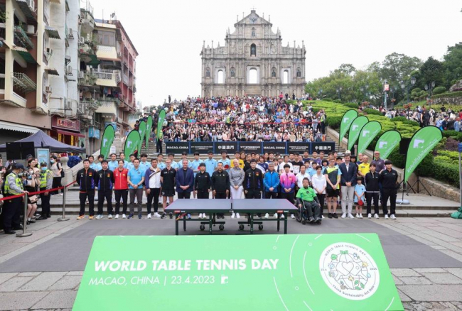 为持续向全球各地宣传乒乓球运动,国际乒乓球联会从2023年起,将每年的4月23日命名为「世界乒乓球日」,并于昨日(23日)上午于澳门著名世遗景点大三巴牌坊前举行「世界乒乓球日」庆祝活动,邀请多位世界排名前列及在澳门参与「WTT 澳门冠军赛 2023 ─ 由银河娱乐集团呈献」的球员出席。