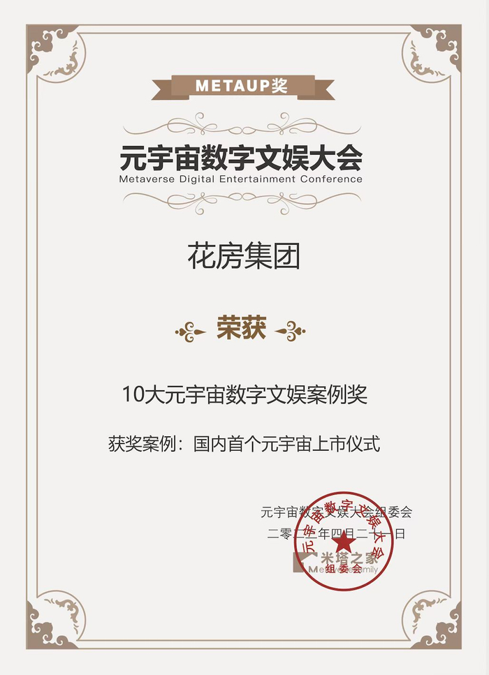 重磅|花房集团荣获“10大元宇宙数字文娱案例奖”