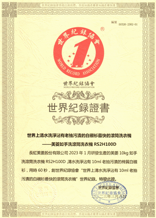 美菱如手洗洗衣机荣获世界纪录