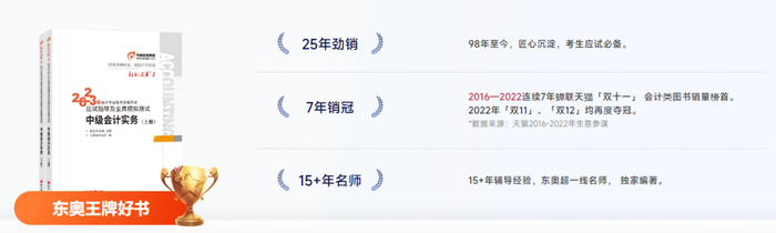 2023年,中级《轻一》再次踏上新征程,用创新和升级,帮助考生从容备考!更多内容快来东奥会计在线官网了解详情吧!