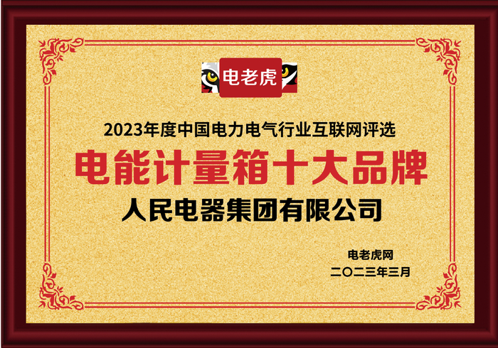 电老虎网联合行业协会、专家,共同发起了2023年中国电力电气“电能计量箱十大品牌”评选活动,旨在表彰优秀企业,展现精英企业风采!人民电器集团有限公司凭借着超强的企业实力荣获“电能计量箱十大品牌”荣誉称号!