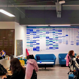 进入一知智能的业务办公室,最显眼的是一幅全尺寸的客户墙,用明确的颜色划分着不同推进阶段的目标行业客户,同时用透明化的方式,把标准化的客户服务流程、算法模型迭代进度全部印刷出来贴到了墙上。
