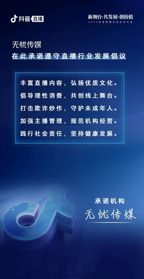 接下来,无忧传媒将进一步加强主播职业道德建设,深耕优质内容,坚持正向价值引导,积极承担社会责任,与抖音直播以及行业伙伴,共同营造积极向上、健康有序的行业生态,助力直播行业可持续发展!