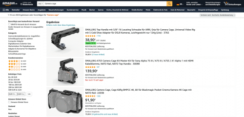 (在亚马逊美国、德国、日本等多个国家站点SmallRig也是相机拓展框类目的“用户好评度”前三名)