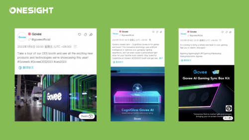 在社交媒体平台上,围绕Govee AI-CogniGlow和CES2023,Govee也推出大量的系列宣传,并且这些内容也是其全平台社媒主页互动最高的帖子之一。
