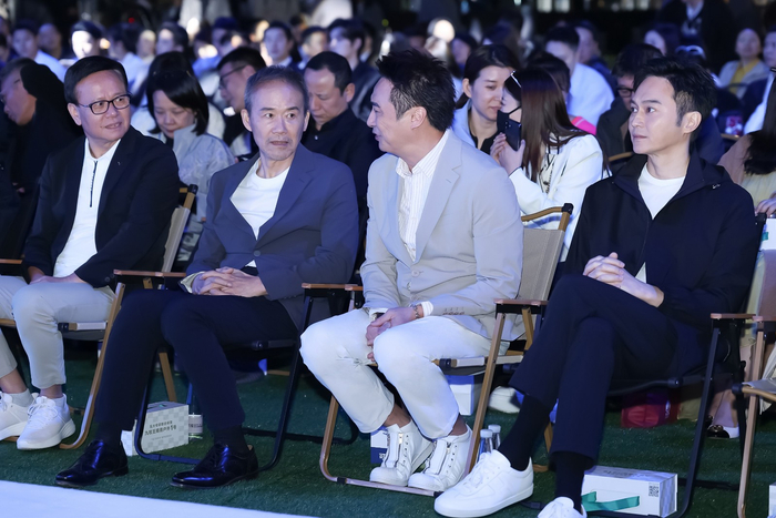 图片人物:(从左至右)九牧王董事长林聪颖、万科创始人王石、演员吴镇宇、演员张智霖