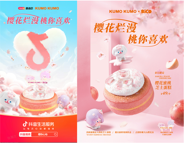 本次KUMO KUMO与潮玩品牌RiCO共同在抖音生活服务「心动上新日」推出联名新品“樱花蜜桃芝士蛋糕”上线,仅两周GMV突破350万,连破GMV新高。活动内策划话题曝光量突破1800万,共有2000+条达人短视频探店,短视频曝光超过2700万。