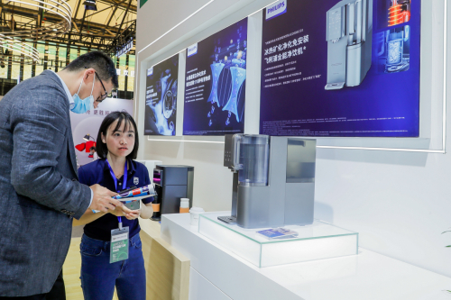 开展首日,飞利浦水健康新品吸引了众多国内外家电产业链上下游客商前来展台参观了解。现场技术人员以过硬的技术知识,详尽地向广大游客和客商介绍本次新品的技术特点。作为享誉行业的净水企业,飞利浦水健康秉承“创新为你”的品牌理念,致力于“用有意义的创新改善人们的生活”。为满足近年来消费者越发关注的健康方向,洞悉这一趋势的飞利浦水健康,带来了全屋高阶净水G5系列,覆盖“饮、食、洗、浴”等家庭多元化用水场景,多维度升级用户的净水体验。