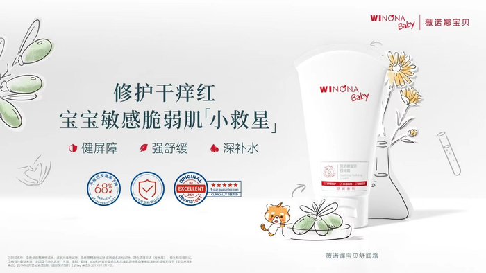 王牌产品薇诺娜宝贝舒润霜,无论从机制还是在功效验证时的效果、安全性、体验感都堪称中国婴童护肤巅峰之作。品牌针对宝宝皮肤干、痒、红问题,与儿童皮肤学专家共同研发皮肤学级护肤品,内含贝泰妮集团的标杆成分——青刺果油,由内强化屏障机能。