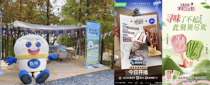 如甄稀冰淇淋,就聚焦广大年轻群体时下流行的社交露营,独家冠名《一起露营吧》,并通过举办露营节等活动,将综艺流量、露营场景与产品实现深度绑定,丰富品牌印象。巧乐兹、须尽欢也同样以娱乐营销为切入点,冠名《萌探探探案》、《了不起!舞社》等综艺,借势娱乐IP拓宽产品食用场景,有效触达消费者,打动年轻人的心。