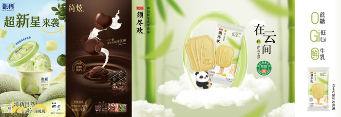 作为伊利冷饮首个高端冰淇淋品牌,甄稀冰淇淋以100%甄选生牛乳重建高端冰品的标准,提升了消费者对高端冰淇淋的体验。伊利高端巧克力冰淇淋绮炫采用了全线产品100%臻选进口比利时黑巧、纯正生牛乳和不额外添加一滴水的支撑点,重新定义了巧克力冰淇淋。此外,绮炫采用国内行业首创的自动整理计数包装技术,在包装上推出了国内首创的迷你独立包装巧克力冰淇淋,食用方式健康卫生,方便分享,充分满足消费者的社交需求。须尽欢则通过创新推出0蔗糖低GI新品“轻·浮云芝芝”——芝士乳酪味冰淇淋,进入大健康赛道,不论是概念还是口感都领先于同类产品,真正将冰淇淋产品做到了极致,一经推出就受到众多消费者的喜爱。
