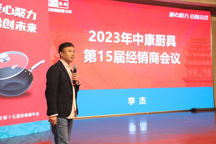 会议伊始,中康品牌负责人李杰首先对核心经销商与嘉宾的到来表示欢迎,并在随后的演讲中表示,“敦煌是丝绸之路上的璀璨明珠,四大文明的交汇地,曾有属于它的辉煌。2023年,我们将第15届经销商大会选址在敦煌,也是想在这里开启中康厨具发展新纪元,与全国经销商们共谱2023高质量发展新篇章。”