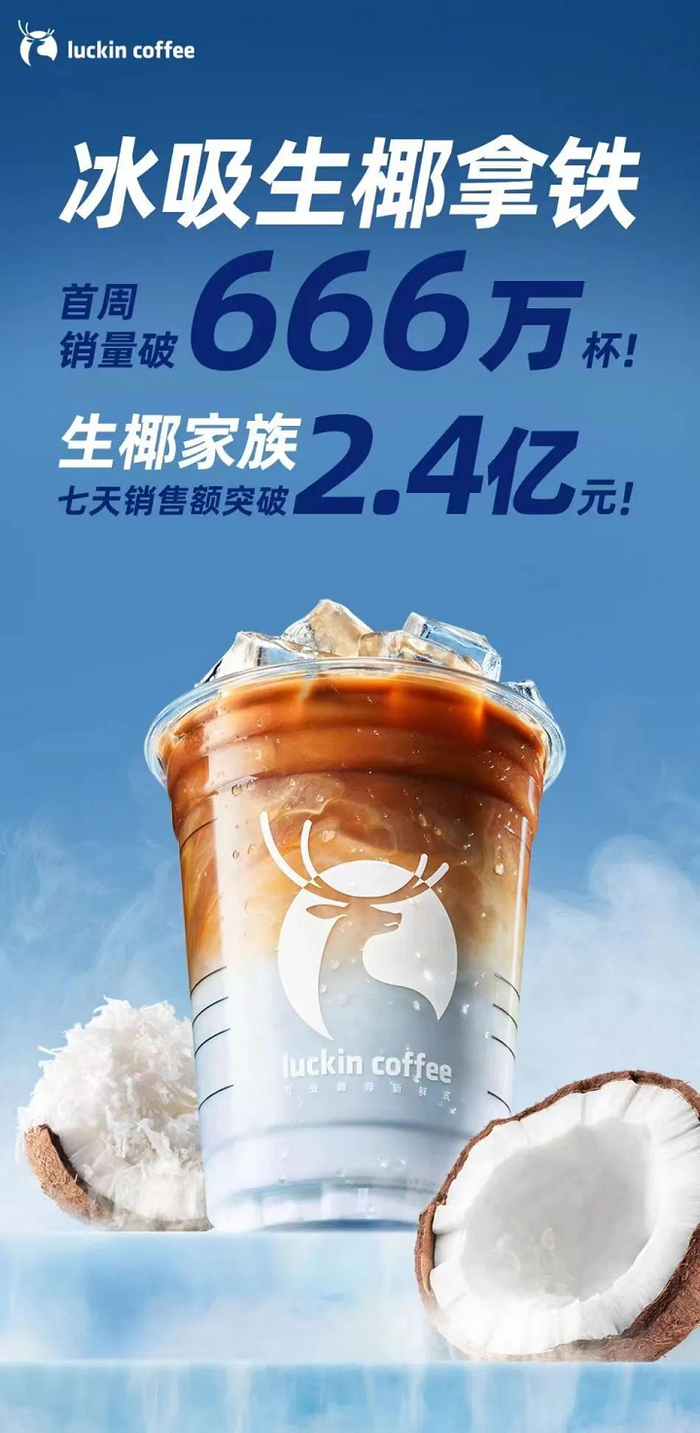 大多数格子间里的打工人、逃不过早八命运的大学生,在过去的两年里应该没少喝过瑞幸的生椰拿铁,这杯瑞幸icon般的饮品,在上线一周年的时候单品销量突破了1亿杯,如今更是达到3亿杯,生椰家族的最新成员冰吸生椰拿铁首周销量即突破666万杯。还有生酪拿铁、厚乳拿铁等深入人心的产品,瑞幸变得愈发有辨识度。