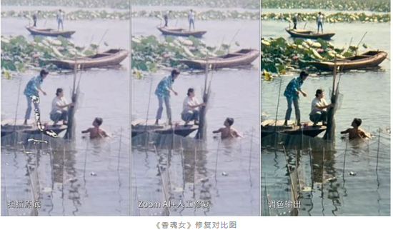 《香魂女》修复版历经物理修复、数字修复、艺术修复三个环节,在不损害原片艺术风格的前提下,最终以4K清晰度与观众见面。自2018年起,爱奇艺即开始探索起电影人工修复与数字修复的融合创新,ZoomAI的应用使经典老片的修复效率提升500倍,影片修复后最高可以达到覆盖4K清晰度及杜比视界画质的“帧绮映画MAX”高品质视听标准。本次《香魂女》“修旧如旧”的经典重映就是爱奇艺在影片修复领域探索的成果之一。