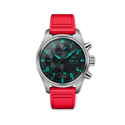 飞行员计时腕表41梅赛德斯-AMG马石油F1车队特别款 (型号IW388108) 新添黑色小牛皮表带,将于线上持续发售。配备“迈阿密粉色”橡胶表带的新款腕表 (型号IW388114) 还将提供绿色表带,表带皆配备EasX-CHANGE表带快速更换系统,无需额外工具即可轻松更换表带。