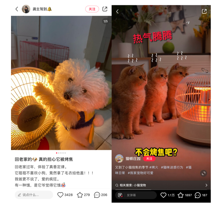 当小红书用户写下 #又到了小狗烧焦的季节,其实表达的是「冬天到来了,宠物们的毛被暖炉烤糊了」。看似简短的一句话,却充分体现出小红书独特的宠物内容生态特征:用户具有场景感的表达,更容易让人共情,传播度更高。