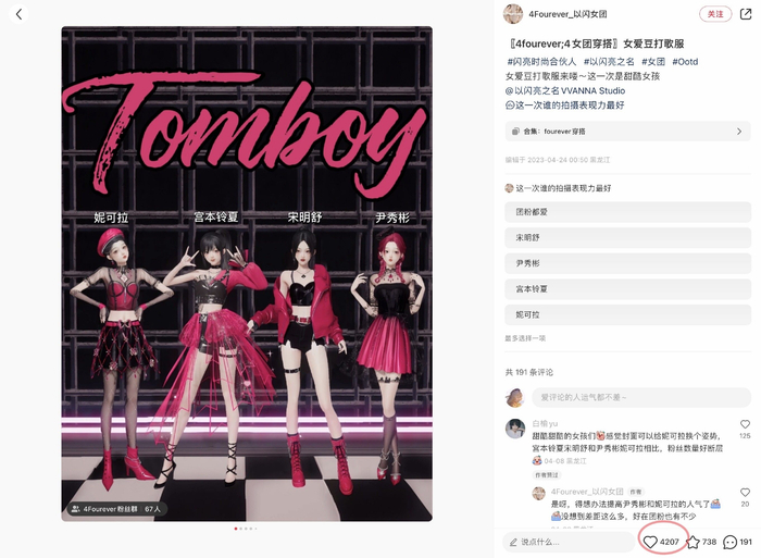 《以闪亮之名》是一款时尚女性手游,但绝不仅限于换装。玩家可以随心捏脸、染色diy服装,搭建自己的理想家园,并邀请好友参观合影。精致且高自由度的游戏内容,让它在TAP和小破站上的评分都超过8分,吸引了许多玩家关注、参与创作。这么多人爱玩,爱分享这款游戏,难怪这张成团合影能在小某书上获得这么高的点赞量和讨论度!