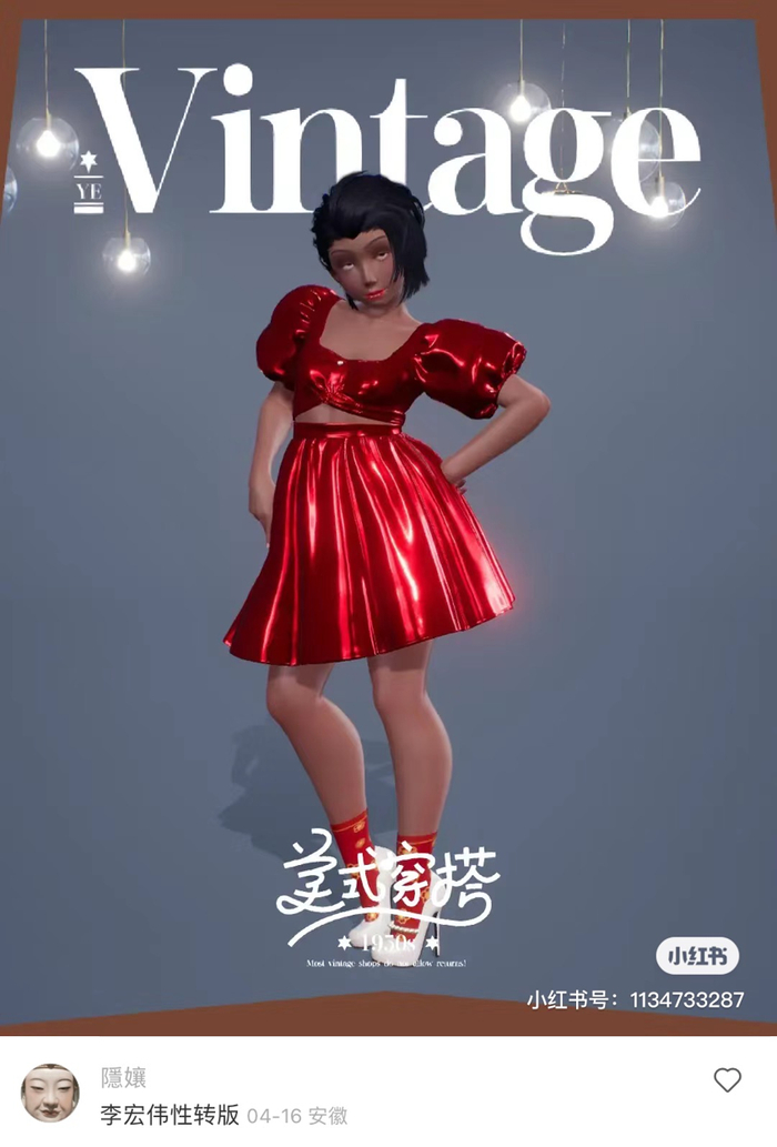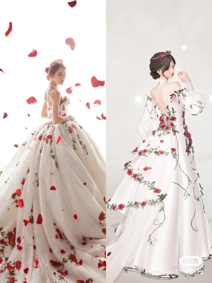 像这位玩家,就将免费的套装进行染色,get迪丽热巴红毯玫瑰大礼裙。